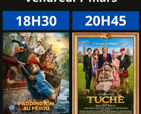 Retrouvez vos 2 séances de cinéma 🍿Films diffusés sur un écran de 7 mètres à la salle des fêtes de Blangy-sur-Bresle. 18h30 : Paddington au Pérou 20h45 : God save the…