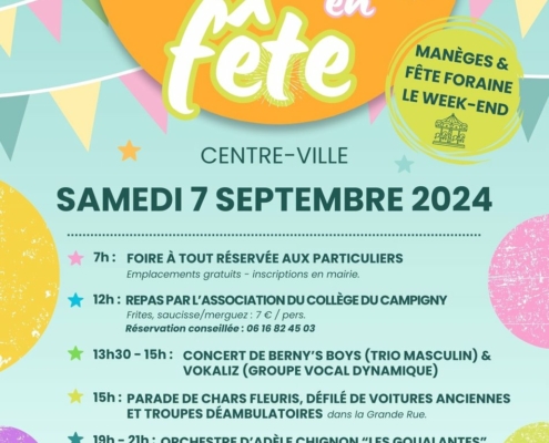 Blangy en Fête aura lieu le samedi 7 septembre 2024. 7h : Foire à tout réservée aux particuliers 15h : Parade de chars fleuris , défilé des voitures anciennes et…