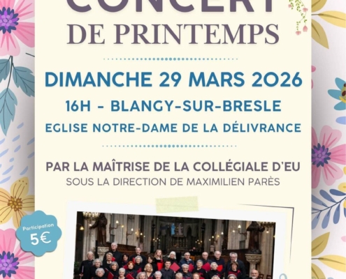 🌸🎶 Concert de Printemps à Blangy-sur-Bresle ! 🎶🌸La commune a le plaisir de vous inviter au Concert de Printemps 🌷📅 Dimanche 29 mars 2026🕓 16h📍 Église Notre-Dame de la Délivrance…