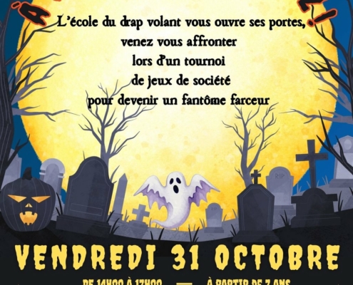 À vos jeux, prêts ? Jouez ! 🎲L’école du drap volant vous ouvre ses portes. Venez vous affronter lors d’un tournoi de jeux de société pour devenir un fantôme farceur 👻Venez déguisés…